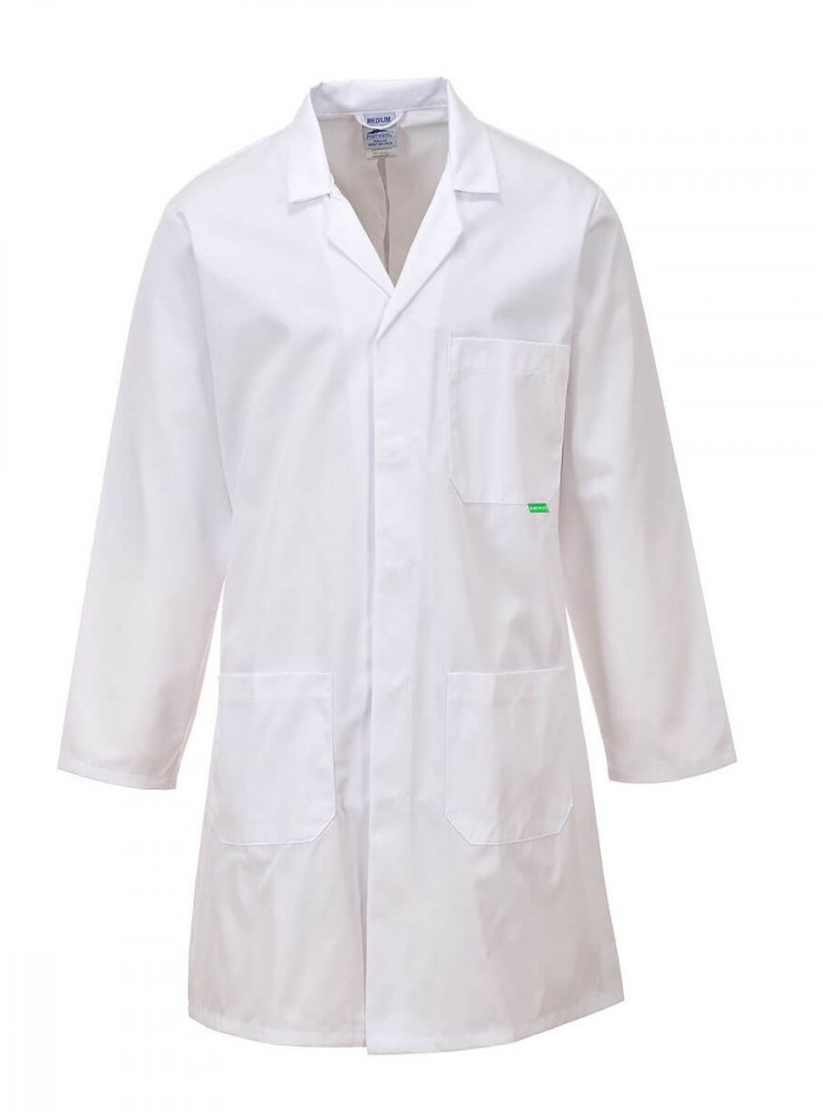 M852 - Antimikrobiális laborköpeny Fehér