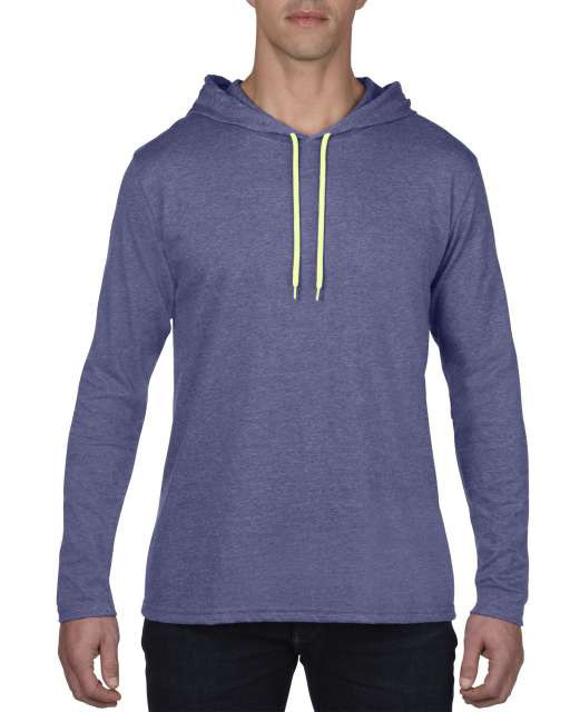 an987hb-ny-m, ANVIL (AN987) nyári hosszú ujjú póló,/fésült pamut kapucnis, Hanga kék/neon