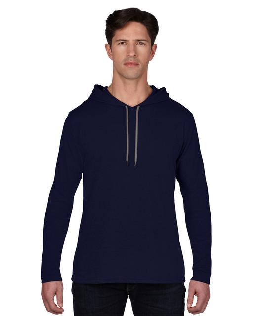 an987nv-dg-s, ANVIL (AN987) nyári hosszú ujjú póló,/fésült pamut kapucnis, Sötétkék/sötét