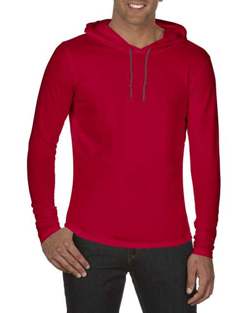 an987re-dg-s, ANVIL (AN987) nyári hosszú ujjú póló,/fésült pamut kapucnis, Piros/sötét